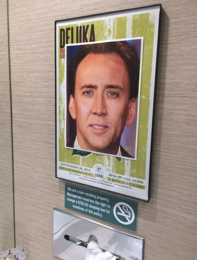 20. Когда постоялец попросил номер в отеле с бонусом, в виде принта на подушку с ликом Николаса Кейджа, он даже не ожидал, что они так сделают