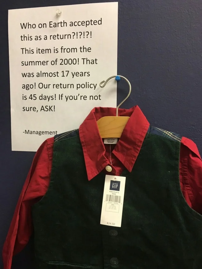 5. Политика возврата товара рассчитана на 45 дней, но в магазине согласились принять вещь спустя 17 лет после покупки!