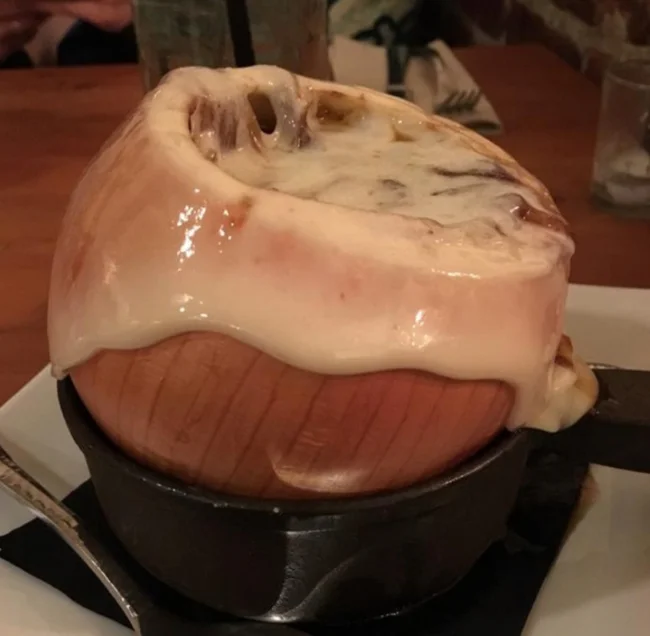 6. Народный французский луковый суп подается в огромной луковице — фишка ресторана