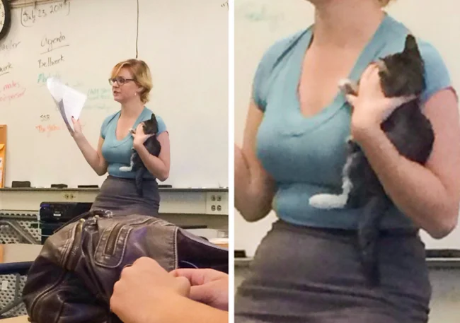 16. По дороге на работу учительница спасла котенка и не выпускала его из рук
