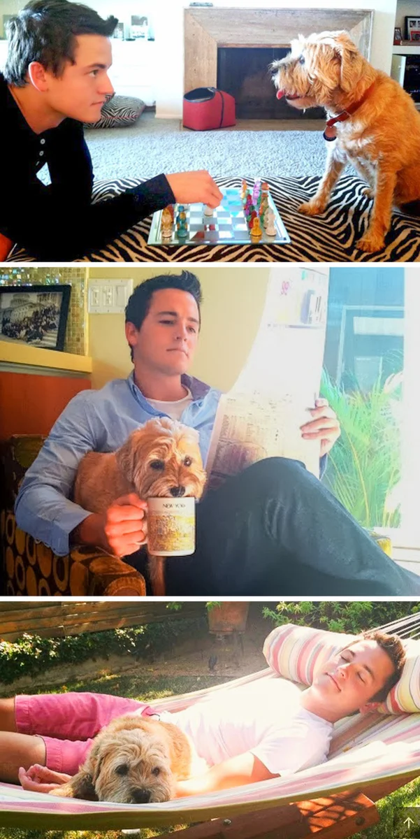 12. Его оставили присмотреть за собакой и он присылает фотоотчеты о том, как работает