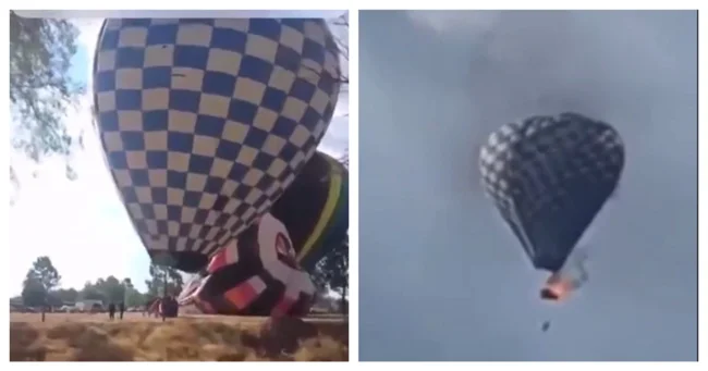 На кадрах, появившихся в соцсетях, видно, как пылающий шар стремительно теряет высоту. Один из пассажиров пытался удержаться за корзину, но в итоге сорвался вниз. Причины, по которым начался пожар, пока неизвестны.