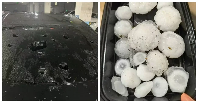 В Китае сильный град побил машины (2 фото + 2 видео)