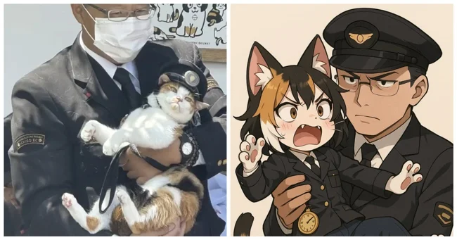 В Японии трех кошек приняли на работу начальниками железнодорожных станций (5 фото + 1 видео)