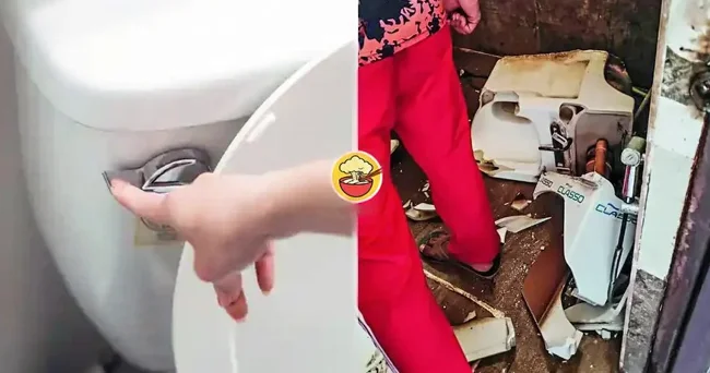 Унитаз взорвался в тот момент, когда мужчина спустил воду из бачка (4 фото)