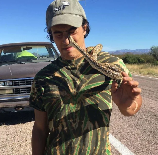Когда придет в голову идея сделать классное фото со змеей, найденной на обочине ![]()
