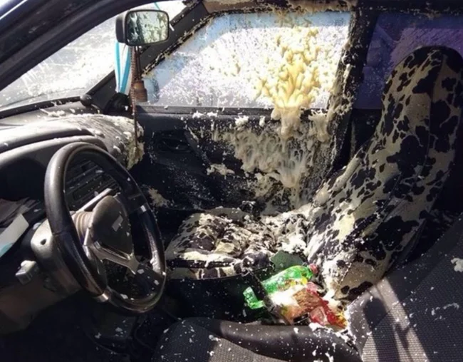 Когда пришла гениальная идея оставить баллончик монтажной пены в автомобиле в сорокоградусную жару