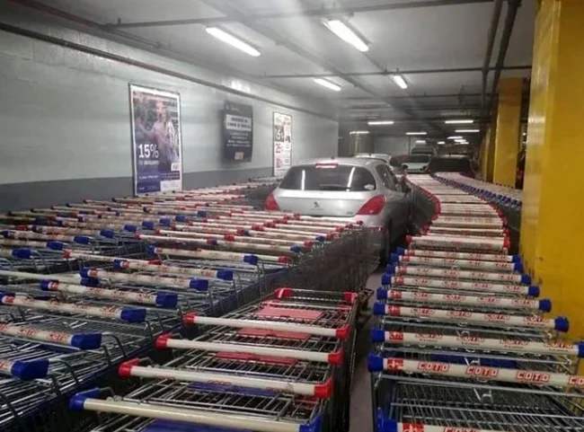 Когда решил припарковать автомобиль в зоне супермаркета предназначенной для тележек