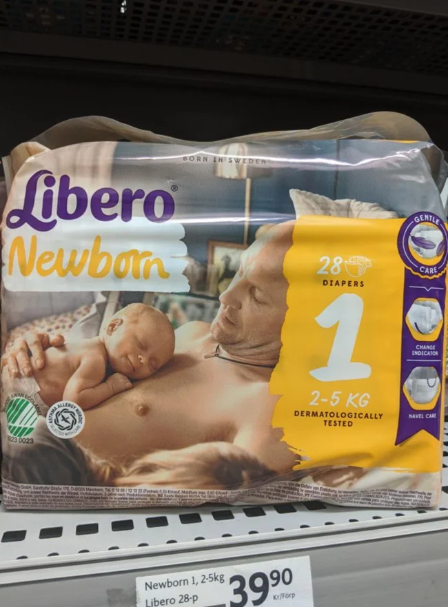 В шведской рекламе подгузники для ребёнка рекламируют мужчины
