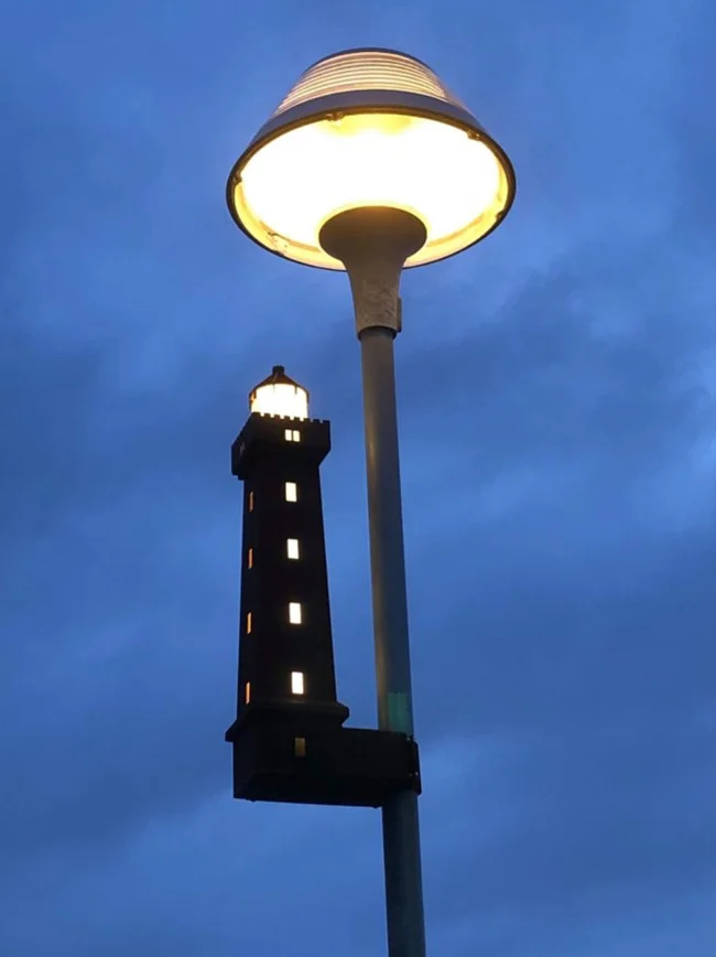 Блаванд в Дании украшен фигурами, имитирующими маяк