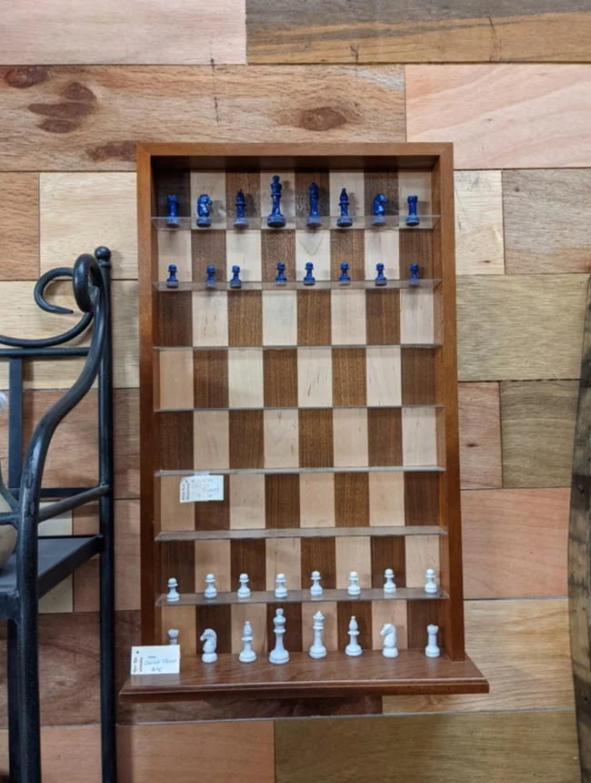 Это шахматная доска, которая расположена вертикально, предназначалась для демонстрации того, как проходит игра