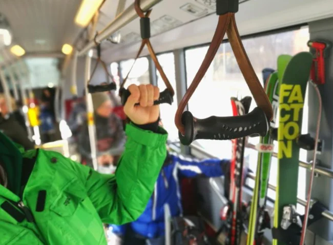 Лыжные палки в австрийском общественном транспорте ещё служат поручнями
