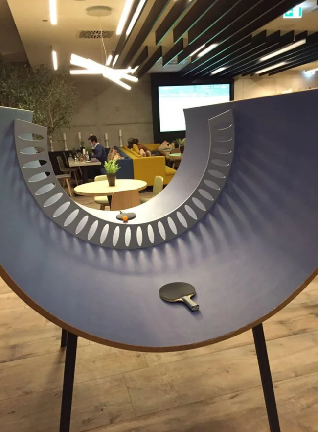 В немецком заведении настольный теннис выглядит именно так, чтобы не приходилось бегать за мячиком по всему помещению