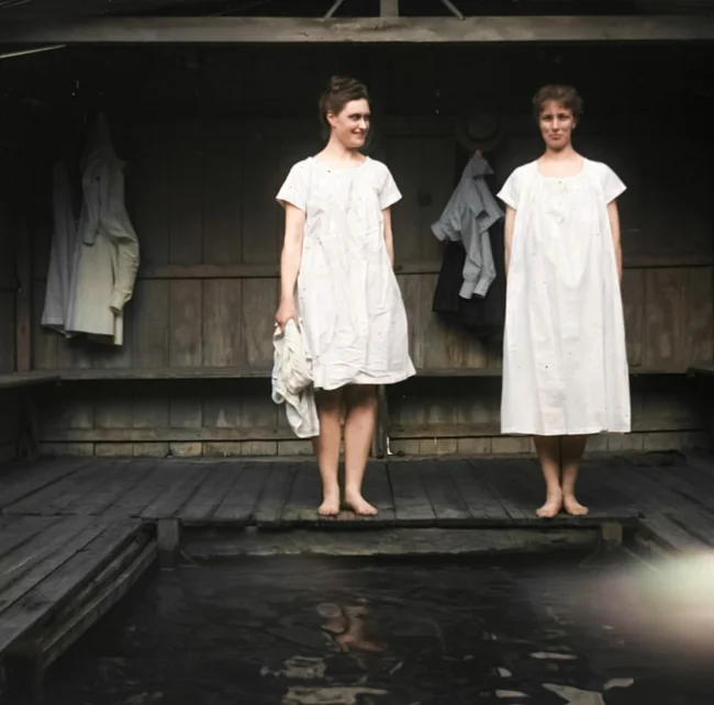 Мост Искусств — одно из самых поэтичных мест на берегах Сены. Он соединяет Лувр с Институтом Франции , а также— сердца влюблённых, мечтателей и ценителей старого Парижа. Построенный в начале XIX века, этот пешеходный мост стал символом не только архитектурной грации, но и романтической культуры: здесь любили встречаться, признаваться в чувствах, рисовать и просто мечтать. В 2008 году пары со всего мира начали прикреплять к перилам Моста Искусств в Париже так называемые «замки любви» — символ вечной верности и романтической связи. Часто на замках оставляли имена влюблённых, а затем ключ dramatic бросали в воды Сены. С годами число замков исчислялось в десятках тысяч. То, что начиналось как трогательная традиция, стало настоящей угрозой для самого моста: летом 2014 года одна из секций ограждения не выдержала веса и обрушилась. Эта история «замковой любви» стала напоминанием: даже самые нежные чувства могут оставить прочный след — как в сердцах, так и на металле. Две женщины в бане. Швеция, 1900-е годы.