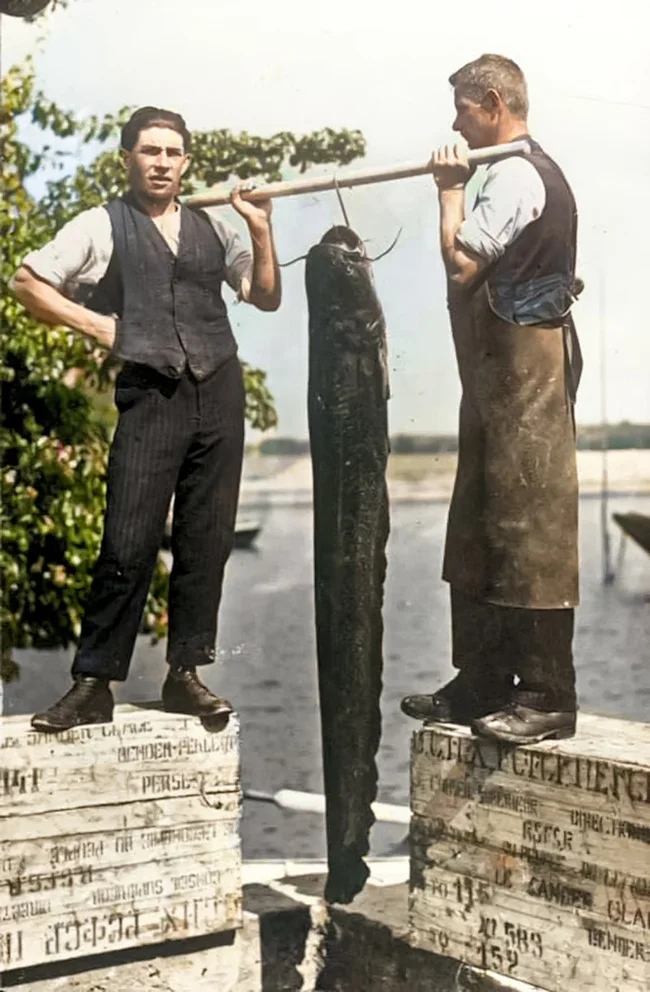 Обратите внимание на размер ячеек сети, рыбу ловили не маленькую... Швейцария, 1943 год.