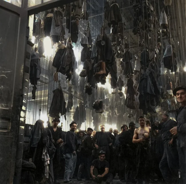 Подвешенные на верёвках или проводах каски, фонари, полотенца и другая экипировка — это не просто способ сэкономить место. Это был практичный ритуал, рожденный в условиях вечной сырости, холода и нехватки пространства. Также вещи лучше сохли в подвешенном состоянии и их не доставали грызуны. Улов на Боденском озере. Германия, 1928 год.