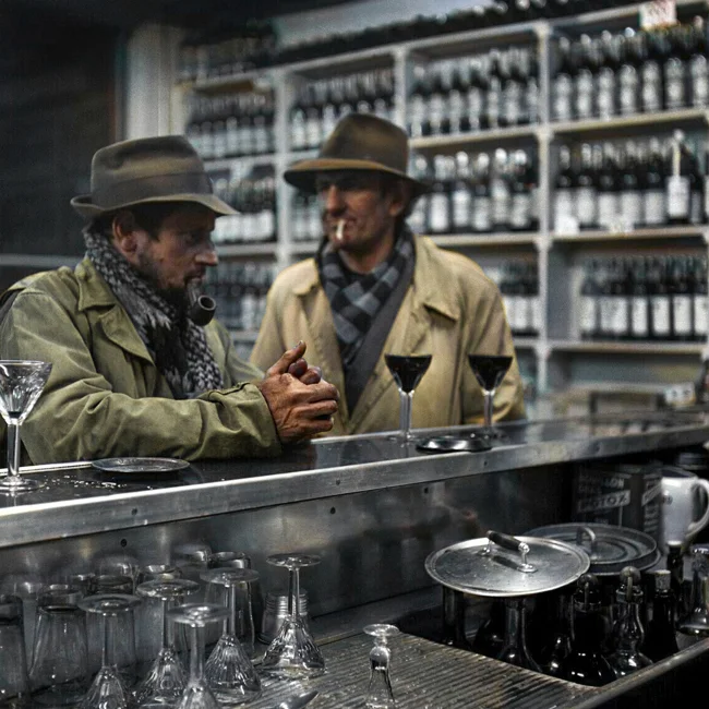 Двое мужчин в баре Парижа, ок. 1950 года.