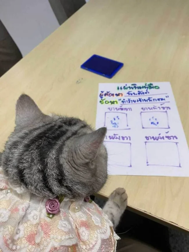 В участке кошку подвергли стандартным процедурам: сняли отпечатки лап, сфотографировали, завели дело и поместили в камеру.