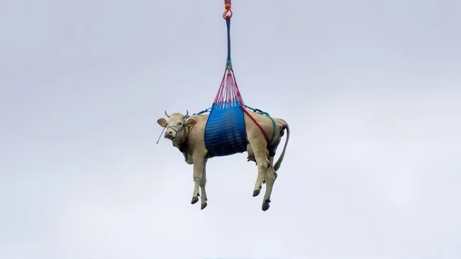 В Швейцарии коров эвакуировали с помощью вертолётов (1 фото + 2 видео)
