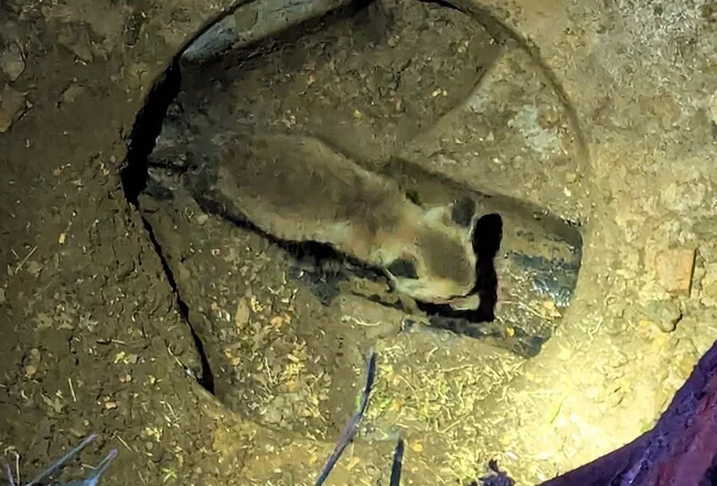 Этот любопытный лисёнок, случайно провалившийся в канализационный люк на глубину около 2 метров, получил помощь.