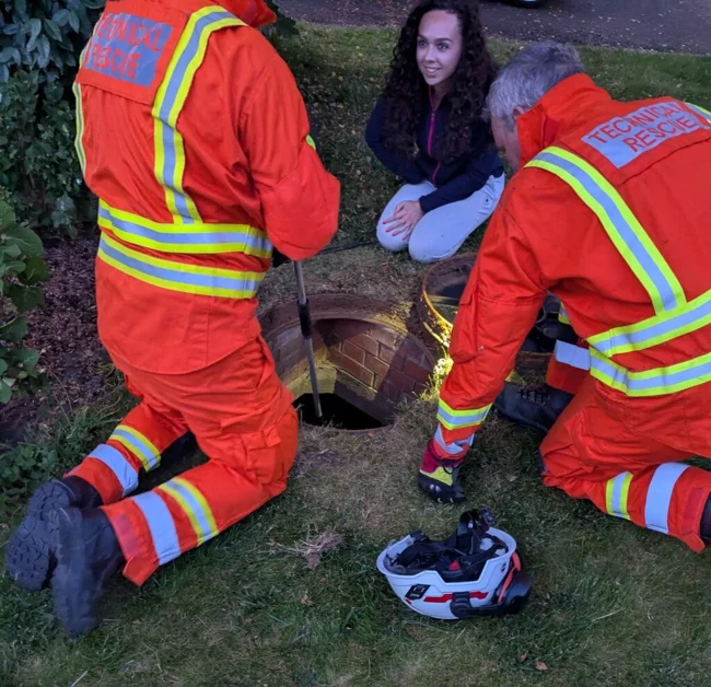 Один из пожарных спустился в люк и поместил лисёнка в клетку. А поскольку неподалёку бродила мама-лиса (явно изнывающая от беспокойства за своё чадо), то был шанс воссоединить семейство. Для этого люди оставили открытую клетку и отошли подальше. Через некоторое время лисица решилась подойти к клетке и убедиться, что внутри находится именно её детёныш. Мамаша обнюхала лисёнка и увела его с собой.