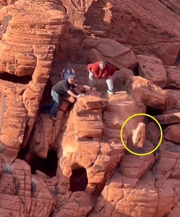 2. В США мужчины столкнули со скалы камень, возраст которого составляет около 140 млн лет