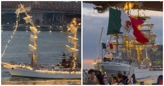 Судно ВМС Мексики прибыло в Нью-Йорк с праздничным визитом еще во вторник. Согласно информации, предоставленной Военно-морскими силами Мексики, корабль «Cuauhtémoc», имеющий длину 90,5 метров и ширину 12 метров, впервые вышел в море в 1982 году.