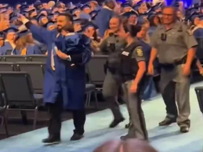 Полиция пыталась задержать выпускника во время церемонии вручения дипломов в университете Буффало в Нью-Йорке. Причина? Он поднялся на сцену с маленьким сыном.