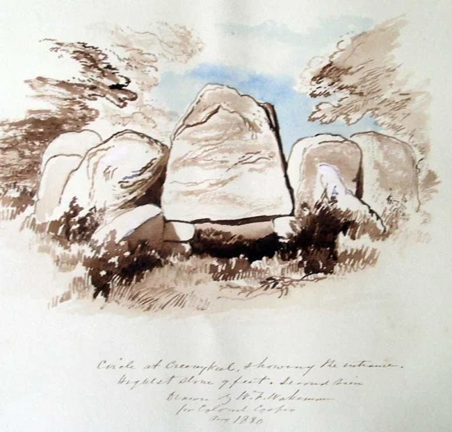 Хотя сегодня это место известно как Кривикил, местные когда-то называли его «Касл Баоскин» — «Замок Колдовства». А когда археологи в XX веке начали изучать гробницу, они дали ей ещё одно имя — «Могилы Великанов», из-за огромных камней, разбросанных вокруг.