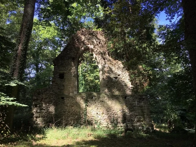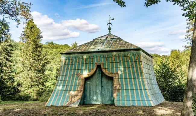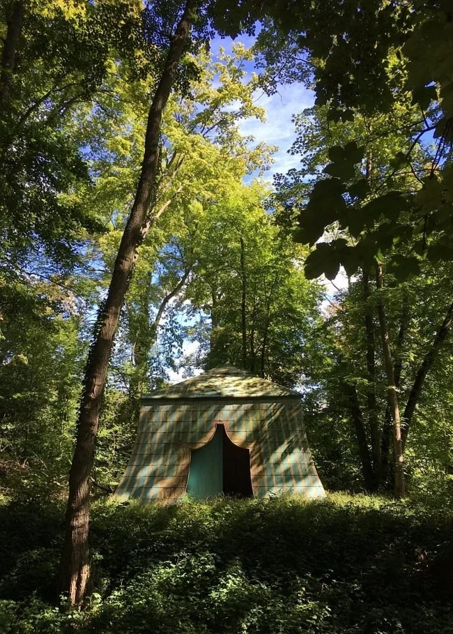 Но жемчужиной ансамбля стал дом-колонна — здание в виде обломка античной колонны, внутри которого скрывалась винтовая лестница, ведущая к пяти этажам гостевых покоев. Сам же Монвиль предпочитал скромный китайский домик.