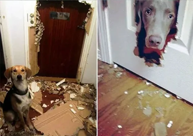 Некоторые люди, уходя из дому, пытаются ограничить пространство пребывания пса, скажем, коридором, но это не всегда спасает: собачьи зубы способны справиться с межкомнатной дверью.