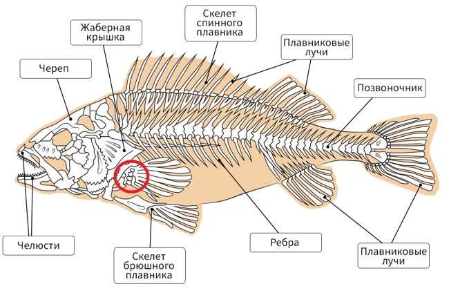 Обратите внимание на грудные плавники рыб. В основании находится множество маленьких косточек.