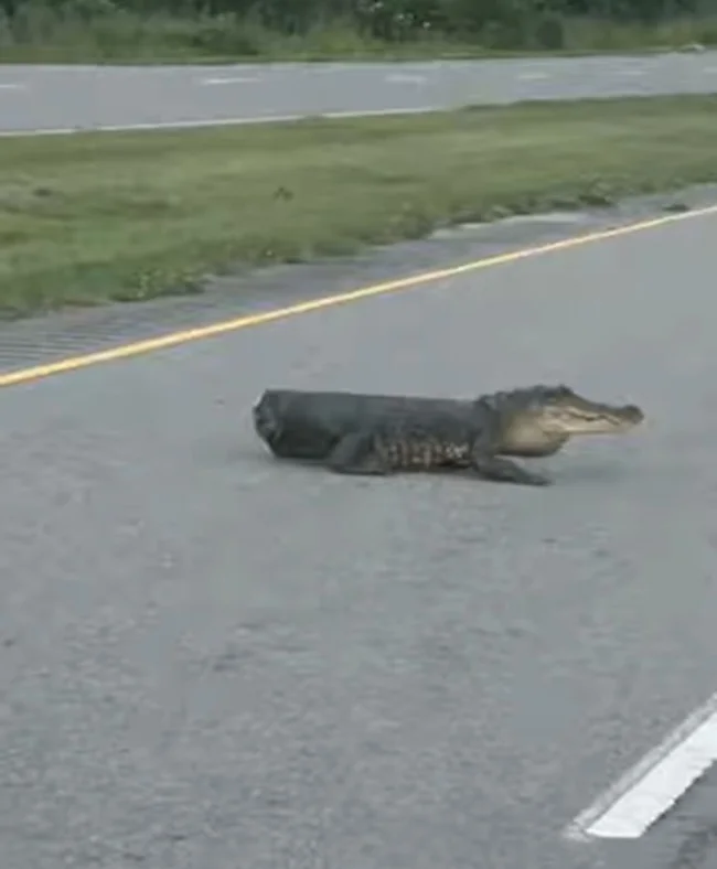 Аллигатора без хвоста заметили на дороге в США (3 фото + 1 видео)