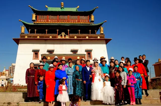 Большая китайская буддистская семья, но платье белое!
