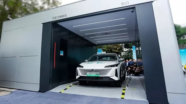 Китайская альтернатива быстрой зарядки электромобилей - на всю процедуру уходит примерно 1,5 минуты (5 фото)