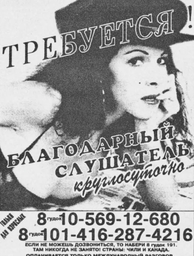 Пример рекламы прошлого в газете: секс по телефону, 90-е