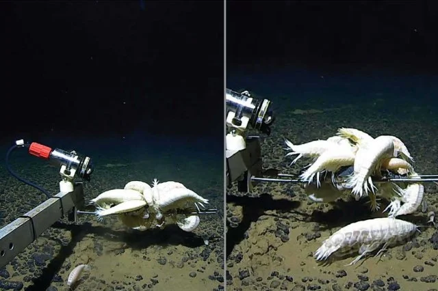 Как мало мы знаем о глубоководных жителях морей и океанов. Перед вами гигантский бокоплав — самое большое в мире существо, похожее на креветку, которое живёт на глубинах от 3900 до 8900 метров. Раньше учёные думали, что их очень мало, но на самом деле оказалось, что они встречаются намного чаще и могут жить почти на 60% площади морского дна. Это существо размером с кота или небольшую собаку.