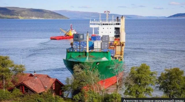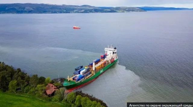 В Норвегии мужчина проснулся и увидел на участке грузовой корабль (3 фото + видео)