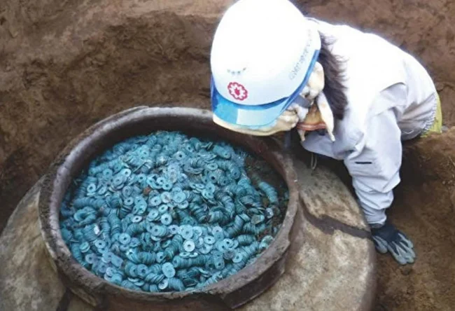 В 2018 году в северной части Токио археологи нашли в резиденции самурая старинный кувшин XV века. Он был наполнен бронзовыми монетами из разных регионов и эпох. Сосуд обнаружили в резиденции самурая. Как и почему кувшин закопали, до сих пор остаётся загадкой.
