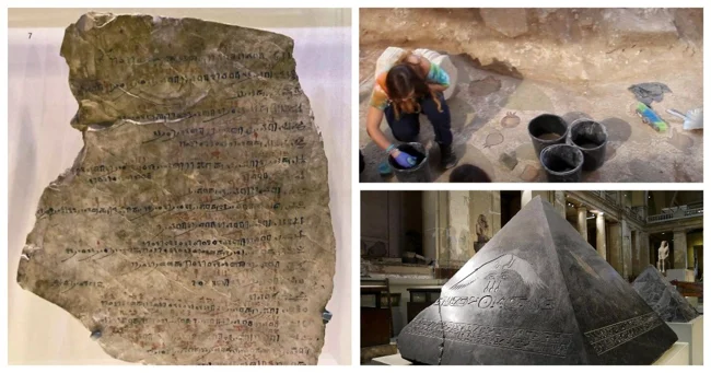Пирамидион (верхний камень) пирамиды Аменемхета III в Дахшуре (Египет), созданный около 1850 года до нашей эры, был извлечён из песка в 1900 году. Камень из чёрного гранита был полностью покрыт иероглифическими письменами. Сейчас он выставлен в Египетском музее в Каире.