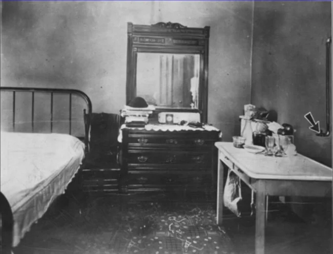 Место преступления - комната, где заговорщики прикончили Майкла Мэллоя, и газоотвод, к которому они подсоединили шланг, который они засунули в рот своей жертве.