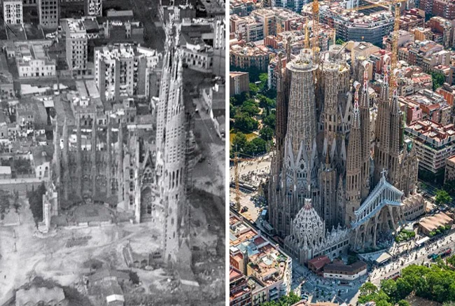 13. Саграда Фамилия, Барселона, Испания, 1930 против 2020