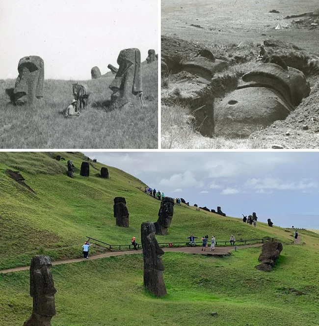 9. Статуи моаи в Рано-Рараку, остров Пасхи, 1914 против 2019