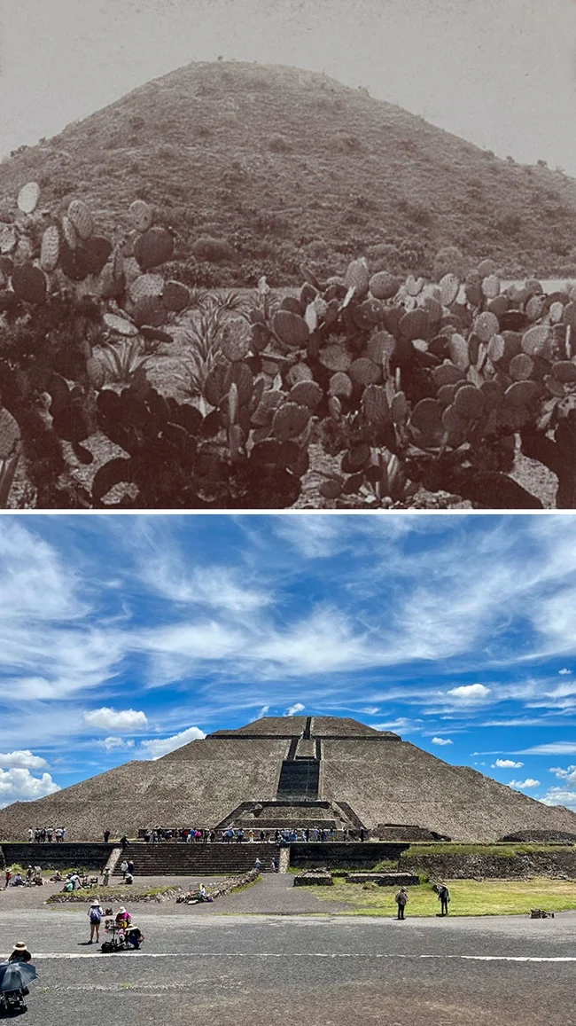 1. Пирамида Солнца в Теотиуакане, Мексика, 1900 против 2023