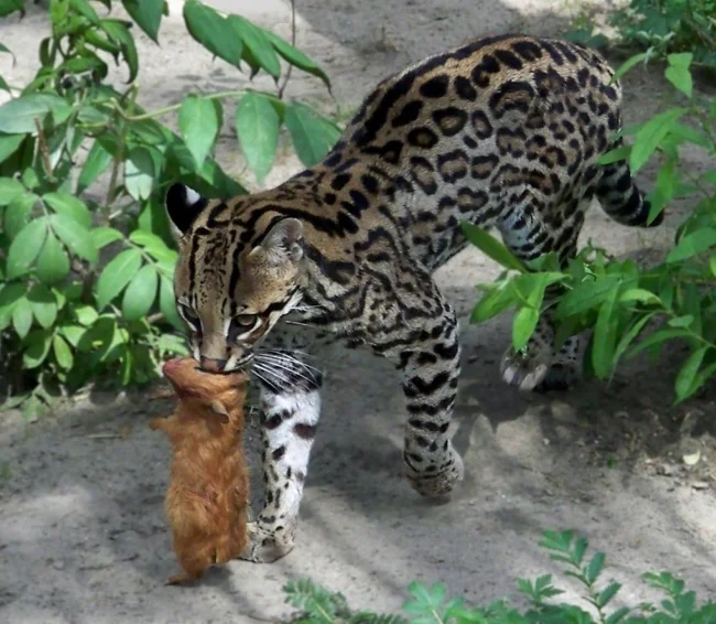 Оцелоты — перфекционисты в охоте. Они тщательно очищают добычу от шерсти и перьев, а их шершавый язык позволяет обглодать кости дочиста. Если не доели, то прячут остатки в листве или затаскивают на дерево, чтобы другие хищники не украли «полуфабрикат».