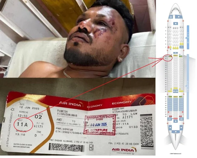 Сегодня потерпел крушение самолёт Boeing 787, на борту которого находилось 242 человека: 230 пассажиров и 12 членов экипажа. Известно. что одному мужчине удалось выжить в этой чудовищной авиакатастрофе. Гражданин Великобритании Вишвашкумар Рамеш сидел в голове самолета в кресле под номером 11А.