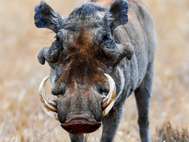 Да, бородавки выглядят своеобразно, но это не изъян кожи и не болезнь, а специальные жировые отложения. На черепе Пумбы в местах выростов даже специальные костные утолщения есть. И если клыки — это меч, то бородавки служат своеобразным щитом. Они помогают в драке, прикрывая глаза и другие уязвимые части морды.