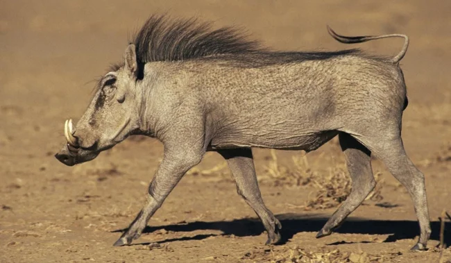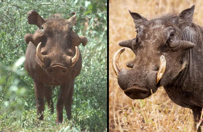 От обычных бородавочников пустынные отличаются тем, что они чуть мельче, не такие клыкастые и больше похожи на худых заморышей, что еле как выживают среди пыли и колючек.