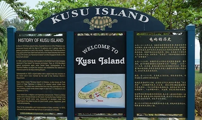 В девятый месяц лунного календаря два рыбака попали в шторм и оказались на грани гибели. Но из пучины всплыла огромная черепаха и превратилась в остров, дав им приют. Благодарные моряки вернулись через год с дарами, положив начало традиции паломничества. Сегодня тысячи людей приезжают на Кусу, чтобы поклониться в храме Да Бо Гун (Туа Пек Конг) и трём малайским святыням-кераматам. А у подножия лестницы, ведущей к храмам, их встречает черепаший заповедник — символ милосердия, застывший в камне.