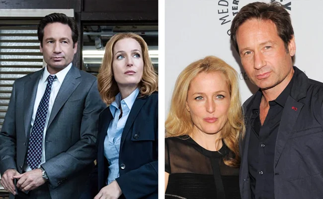 Точно такая же ситуация произошла с Джиллиан Андерсон и Дэвидом Духовны, которые снялись в сериалы «Секретные материалы». Они сыграли коллег, у каждого из которых свое видение ситуации и, чтобы героиню Джиллиан воспринимали всерьез, она носила высокие каблуки и стояла буквально на ящиках. Про последнее Джиллиан однажды и вовсе забыла, когда снималась в сцене и сделала шаг в пустоту.